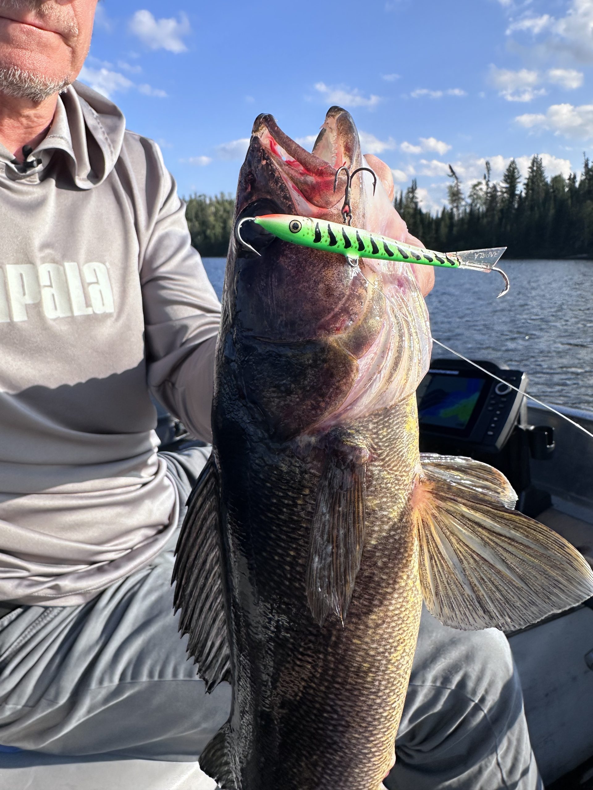 The days of me transporting and caring for live bait on extended Canadian fishing trips are pretty much over. We did pack in some containers of frozen shiners—always good to have on hand as a back-up—but it’s so easy to catch walleyes on artificials at these outpost lakes that it’s become my preferred fishing method. Jigging Rapalas—both the go-to #7 size and the #9—are a key choice. For this trip, I also brought the brand-new #11 size, and soon discovered the walleyes especially liked the green tiger UV color pattern. Jigging Shadow Raps was a nice alternative as well, offering a fatter profile and slower fall rate.