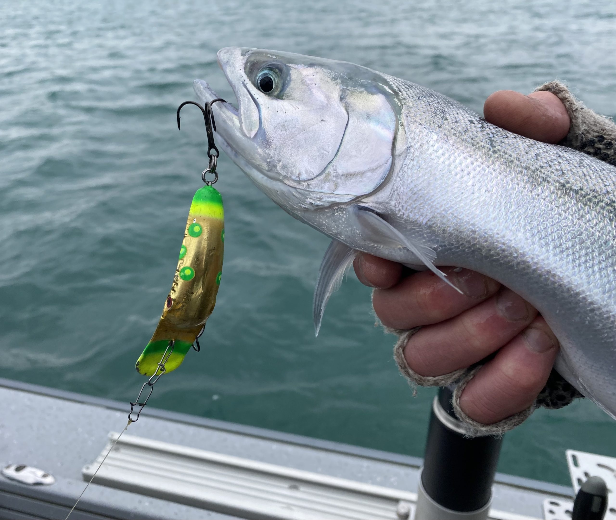Trolling spoons are the other lure every coho angler needs to embrace. Typically fished in combination with downriggers and diving planers, the most productive spoon sizes for coho are the “Mini” and “Standard” models.