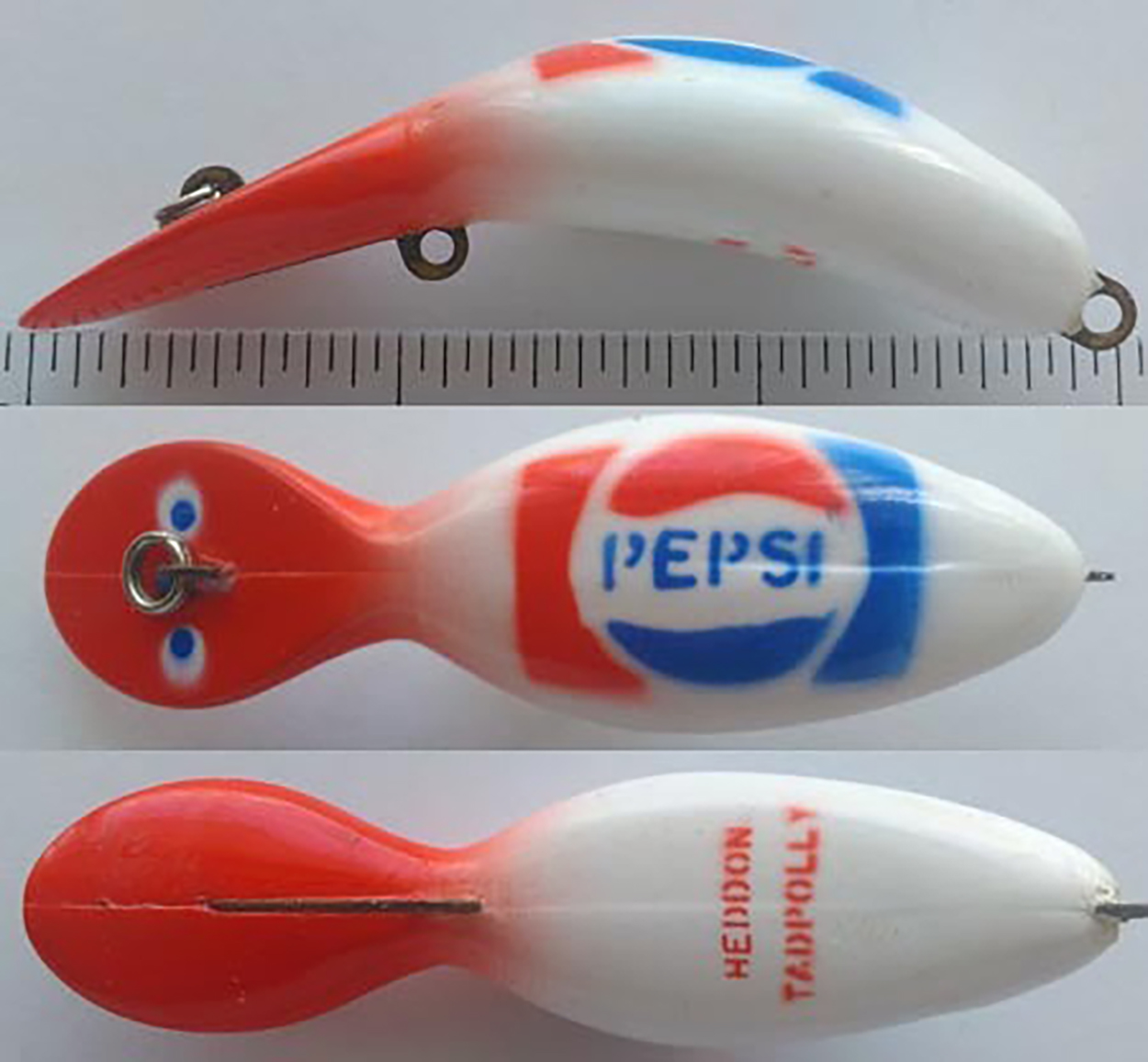 In the early 1970s, Heddon started producing Tadpollys with a chrome or nickel plate type finish. This brought forth a range of lures with colored paint accents or details overlaid on the bright metallic finish. The years of 1977 and 1978, when Heddon had found a way to color the lures without paint, saw the number of color options flourish. In fact, there are so many variations after this point in time that I won’t list them all here. In addition to the standard catalog colors, there are a lot of special or non-catalog colors out there.