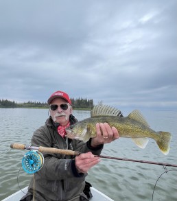 We began by casting toward shore on the right side of the boat and hooked dozens of pike. Patrick landed several over 40 inches despite the periodic squalls that sent raindrops bouncing off the surface of the river like buckshot. Luca suggested that I cast my fly on the left side of the boat if I wanted to catch a walleye, which I did, and sure enough connected with a fat, feisty walleye every few casts. By the end of the day, we had caught dozens of large pike including several dragons, and a dozen spunky walleyes on the fly.