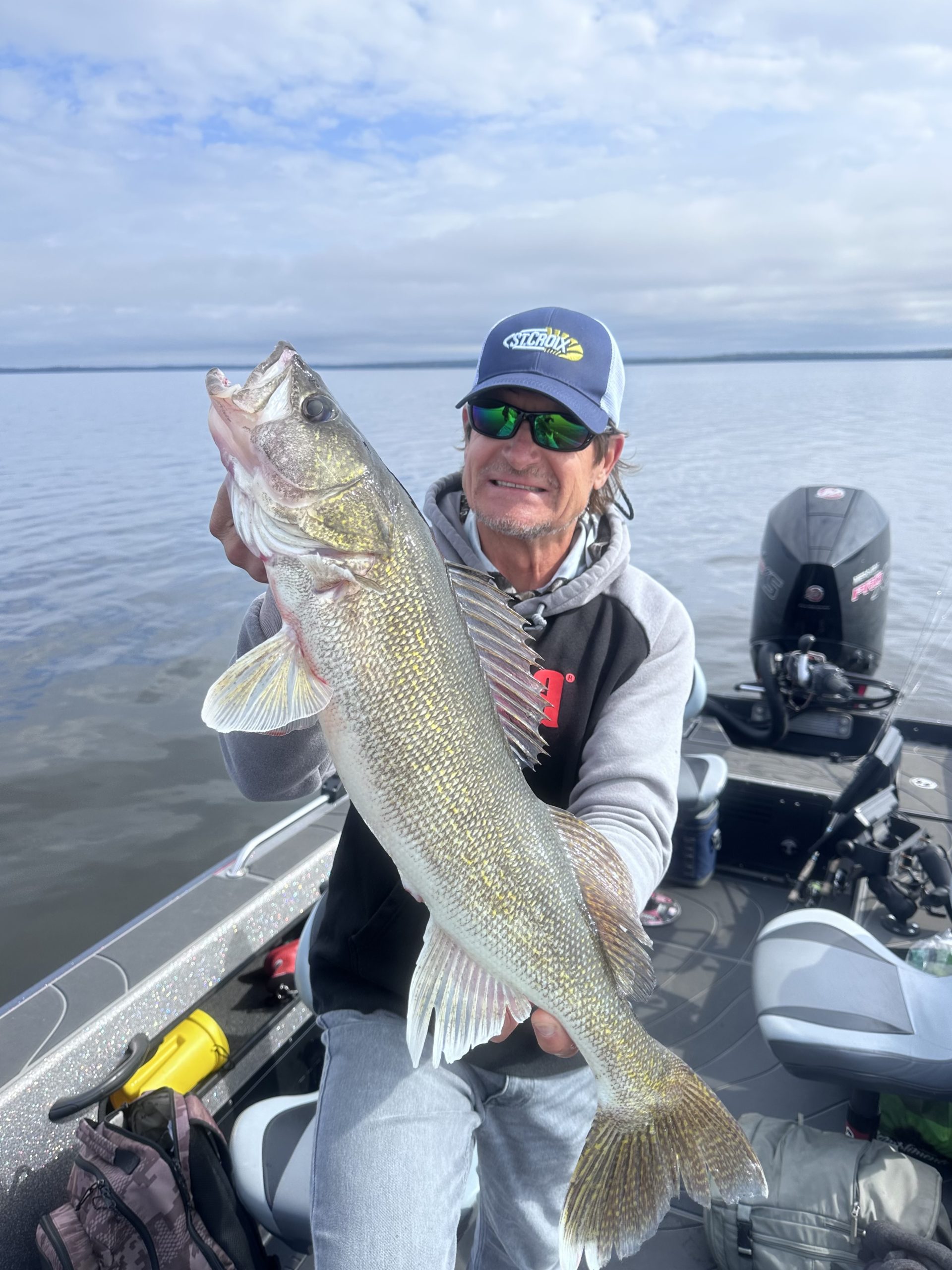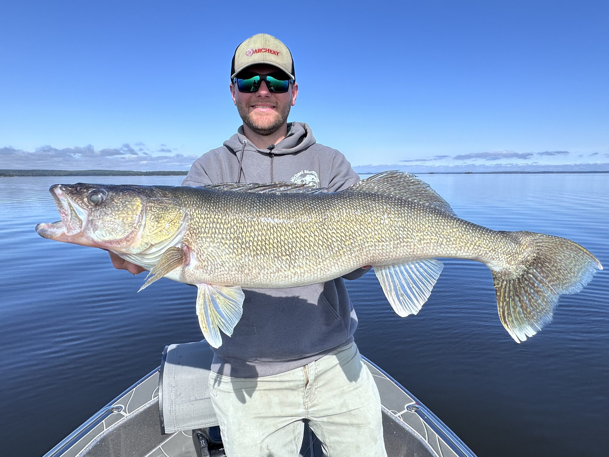 Our mid-September timeframe was blessed with a great day of weather to fish on a big body of water like Pakwash. The morning started out with a crisp, overcast sky, with just a light west wind rippling the lake’s surface. In Michael’s 20-foot tiller Warrior boat, we scooted west to his preferred starting spot—one of many deep reefs that dot the basin of Pakwash Lake.