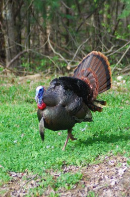 Depending upon the intensity of their breeding cycle, gobblers might be doing just about anything. One distinctive landscape feature that attracts strutting gobblers is open pastures where they can display in full strut. Turkeys seem to favor using open fields during thunderstorms, too. But, when the sun becomes bright and intense, turkeys wseek the shade of woodland acreage. And, if it’s hot, they will likely move close to a source of water, such as damp, wooded creek bottoms.