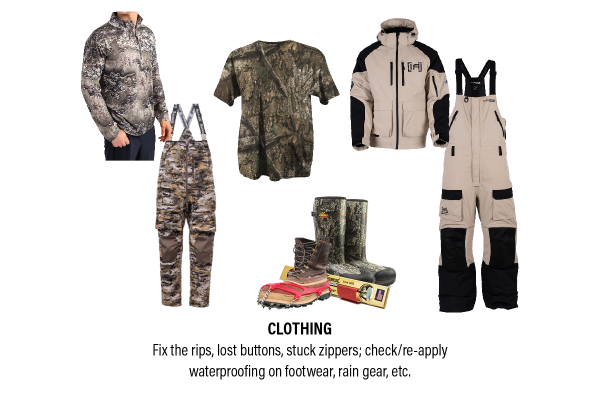 Before going hunting make sure your gear is in good working order. If you fish, it is also a good time for post-season repairs or replacement.